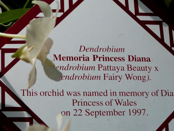 - Mémorial dédié à la Princesse Diana au National Orchid Garden de Singapour