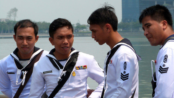 - Officiers de marine dans la baie de Singapour