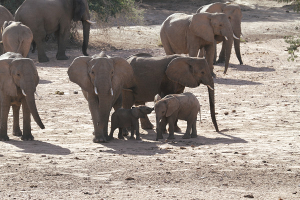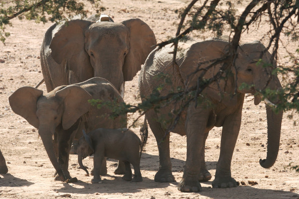 Le pisteur nous explique qu’il n’a assisté à ce spectacle que deux fois dans sa vie. D’habitude les éléphants du désert ne se regroupent pas aussi nombreux et il est peu fréquent qu’ils viennent à proximité des hommes qu’ils craignent. Il est presque aussi impressionné que nous.
